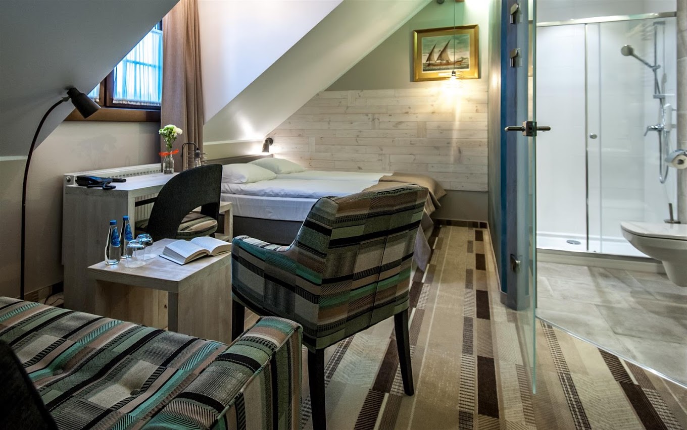 Do dyspozycji Gości oddajemy 17 klimatyzowanych pokoi trzyosobowych. Dodatkowo, w nowo otwartym pensjonacie znajduje się 8 klimatycznych pokoi – cztery dwuosobowe i cztery czteroosobowe. Każdy z nich wyróżnia się indywidualnym charakterem, jednak wszystkie łączy wysoki standard oraz miłość do sztuki i nowoczesnego designu.