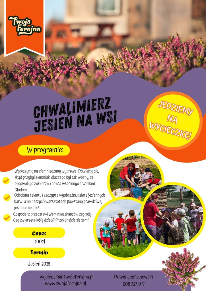 Każda wycieczka to pełna wrażeń wyprawa, która nie tylko bawi, ale też rozwija. Odkrywamy naturę i tajemnice lasu, odwiedzamy agroturystyki i bierzemy udział w różnorodnych warsztatach – od artystycznych przez zwierzolubne, interpersonalne aż po sportowe. To doskonały sposób, by nauczyć dzieci pracy w grupie, rozwijać ich wyobraźnię i kreatywność oraz pokazać im piękno otaczającego nas świata.